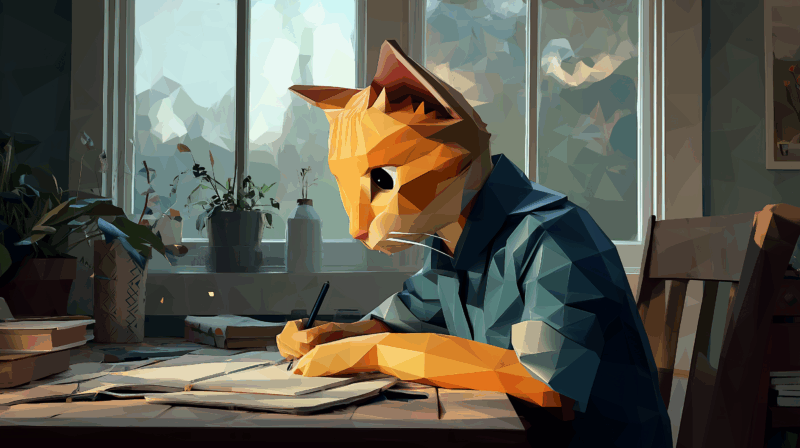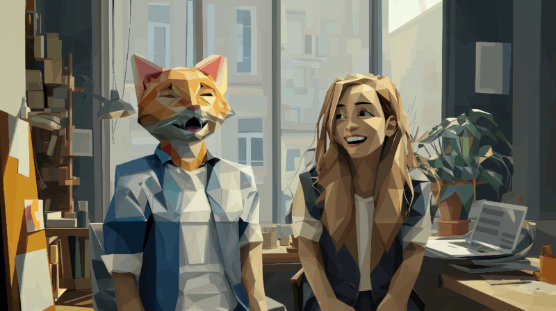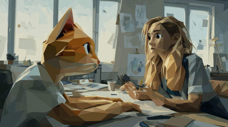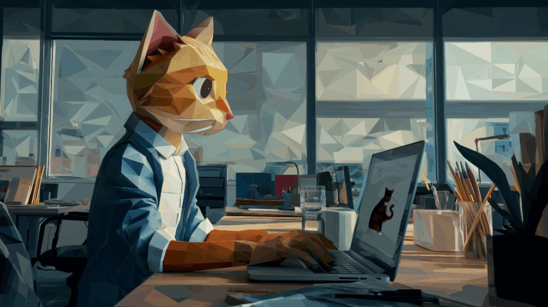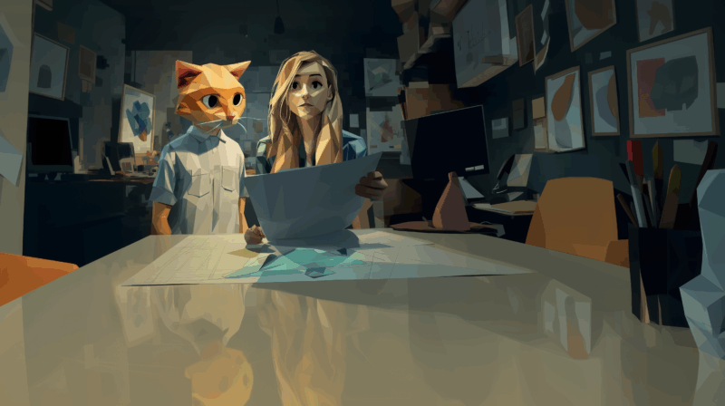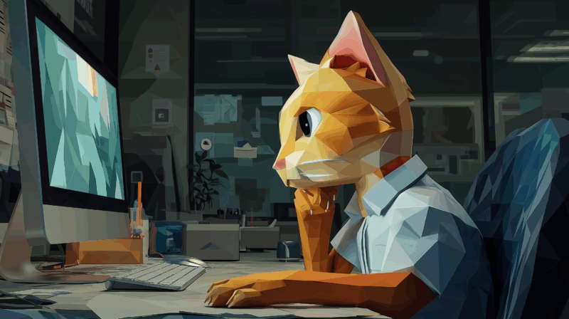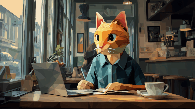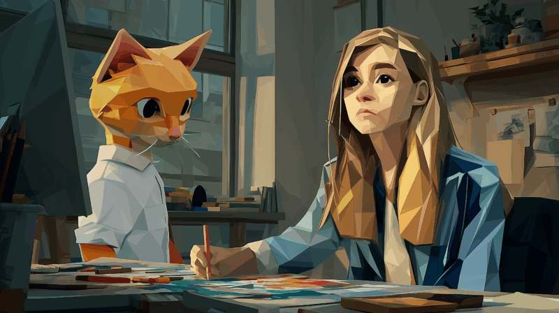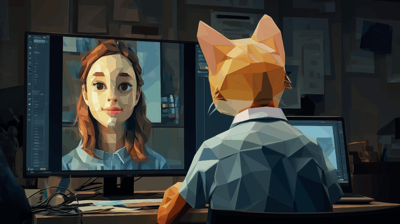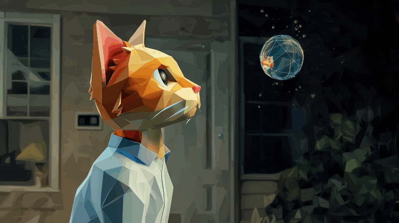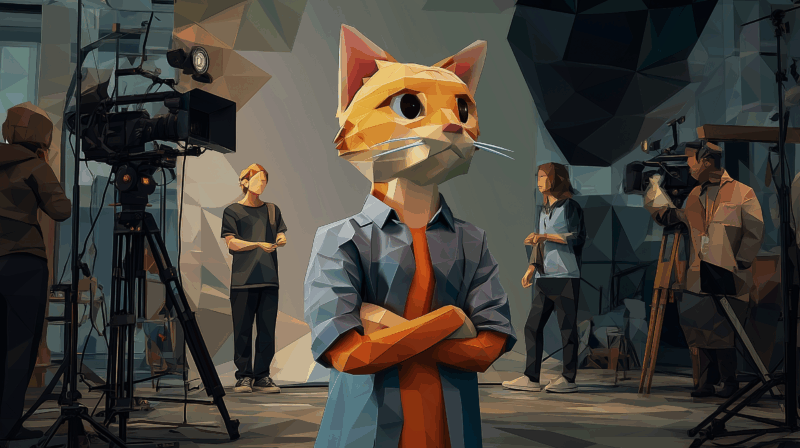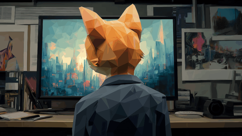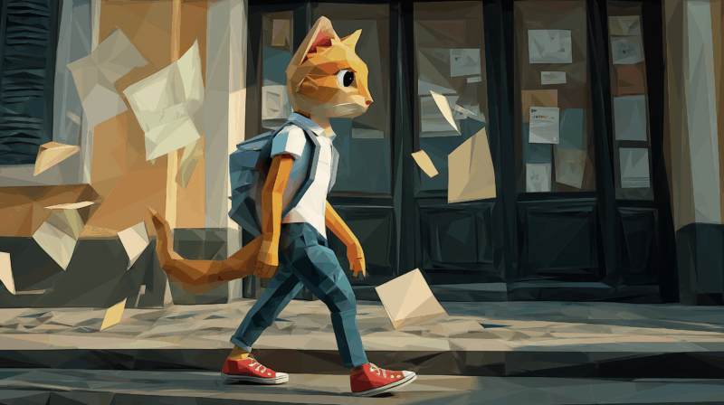 人も、車も、猫も、すべてポリゴンで描かれている。