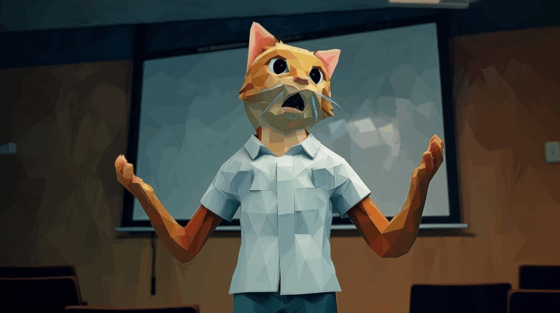 《プレゼン内容:非論理的。でも、観客のエンゲージメント率は過去最高ニャ。》