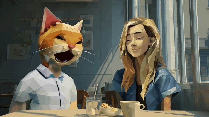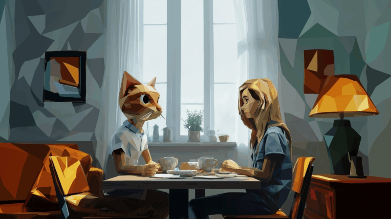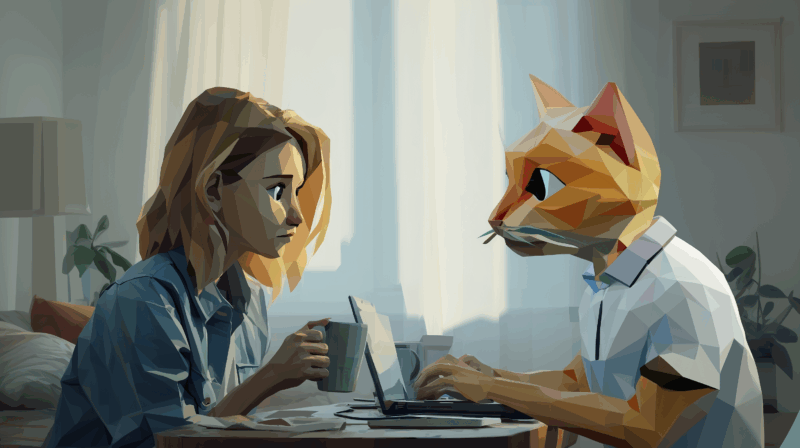 「猫のAIに挨拶されるなんて、朝から面白いわね。」